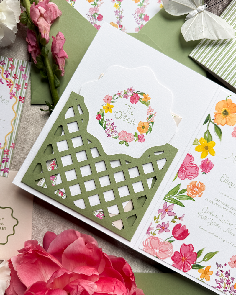 In 2025 we launched a Semi-Custom Collection with the intention of servicing more couples and providing creative, luxury wedding stationery at a more affordable price point. Take a look around! If you are looking for something bespoke, made just for you, fill out our inquiry form for Custom or Fine Art Design.