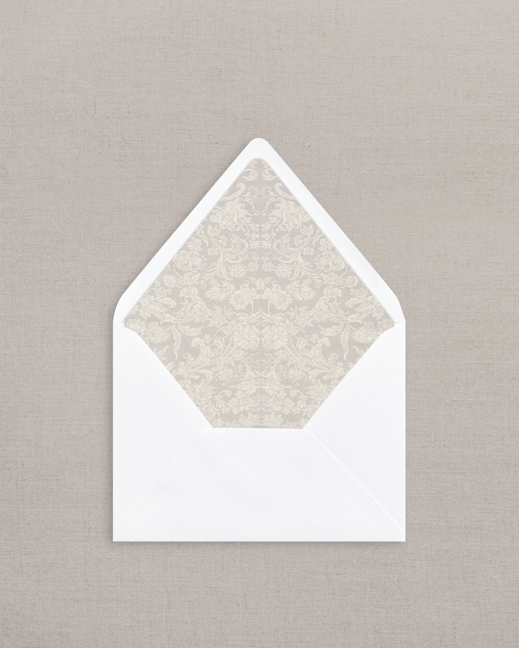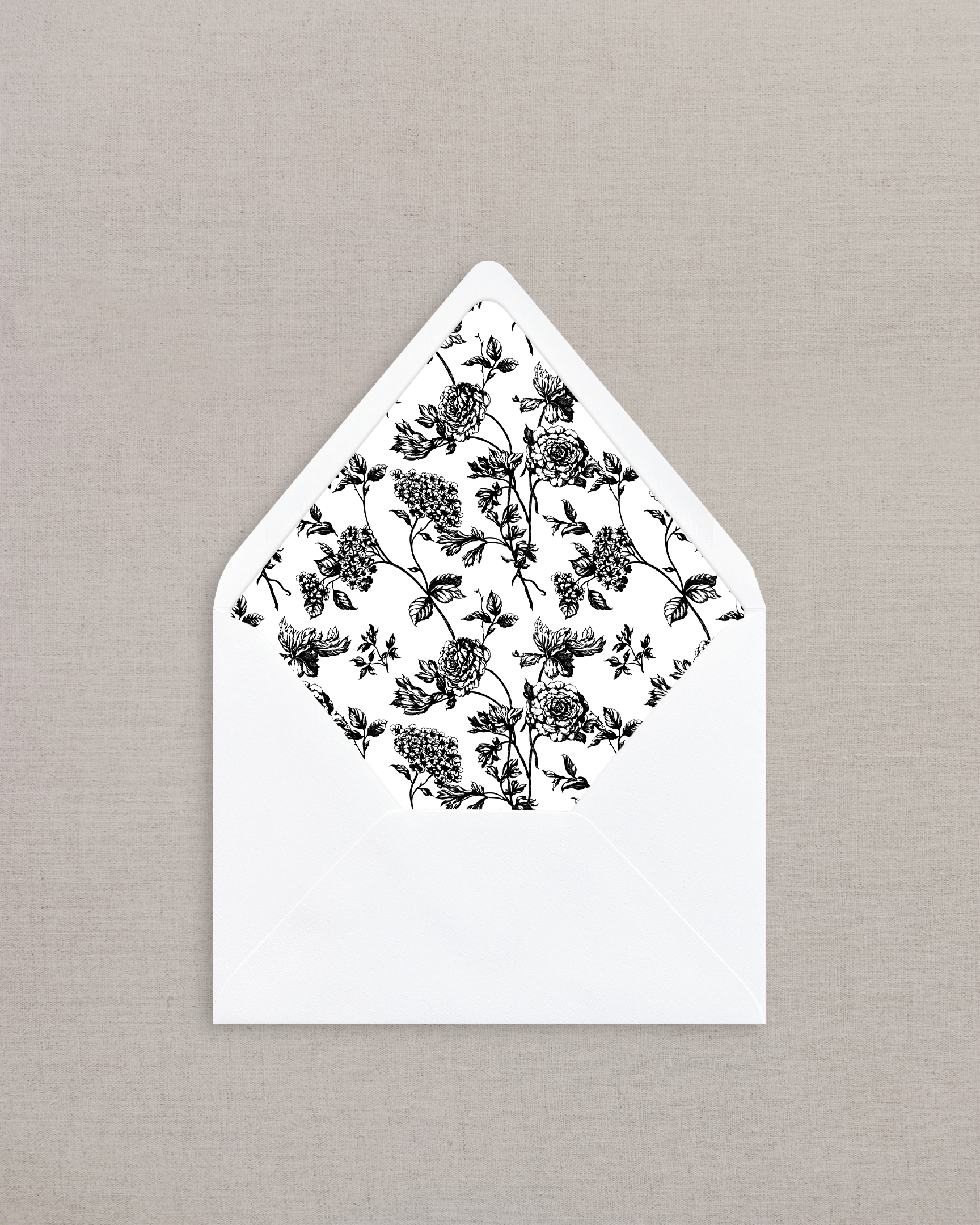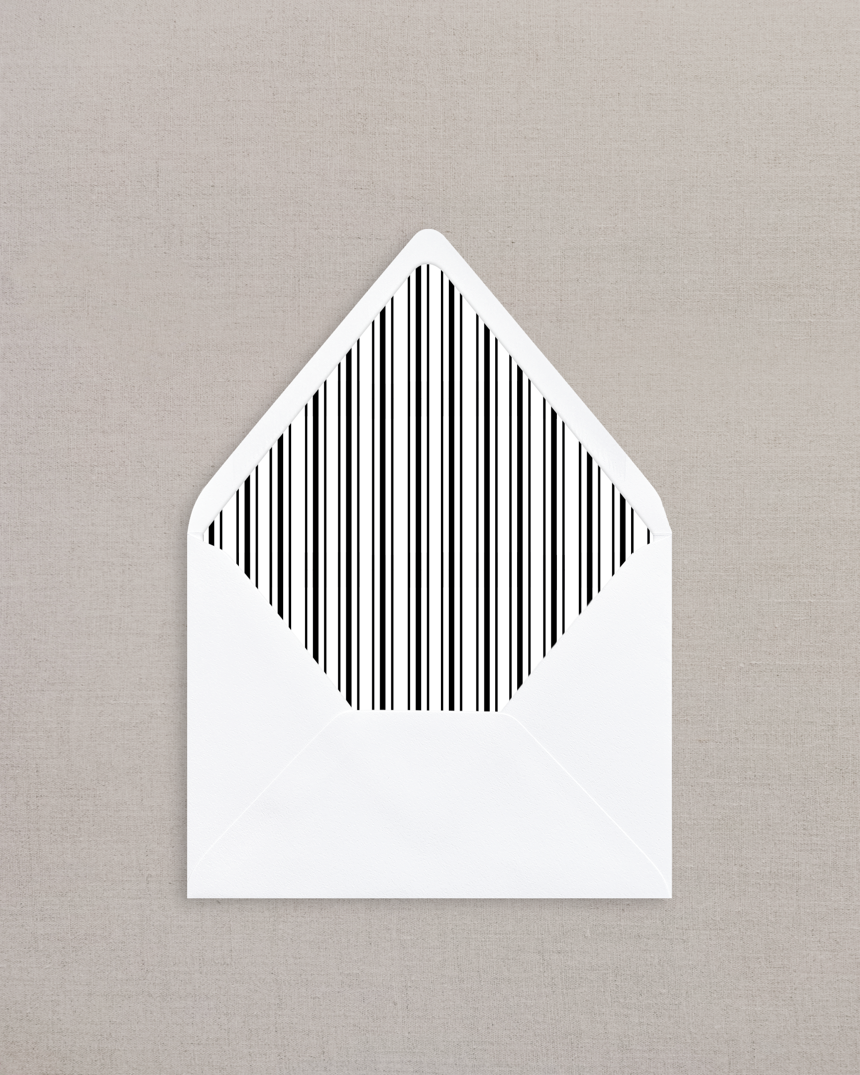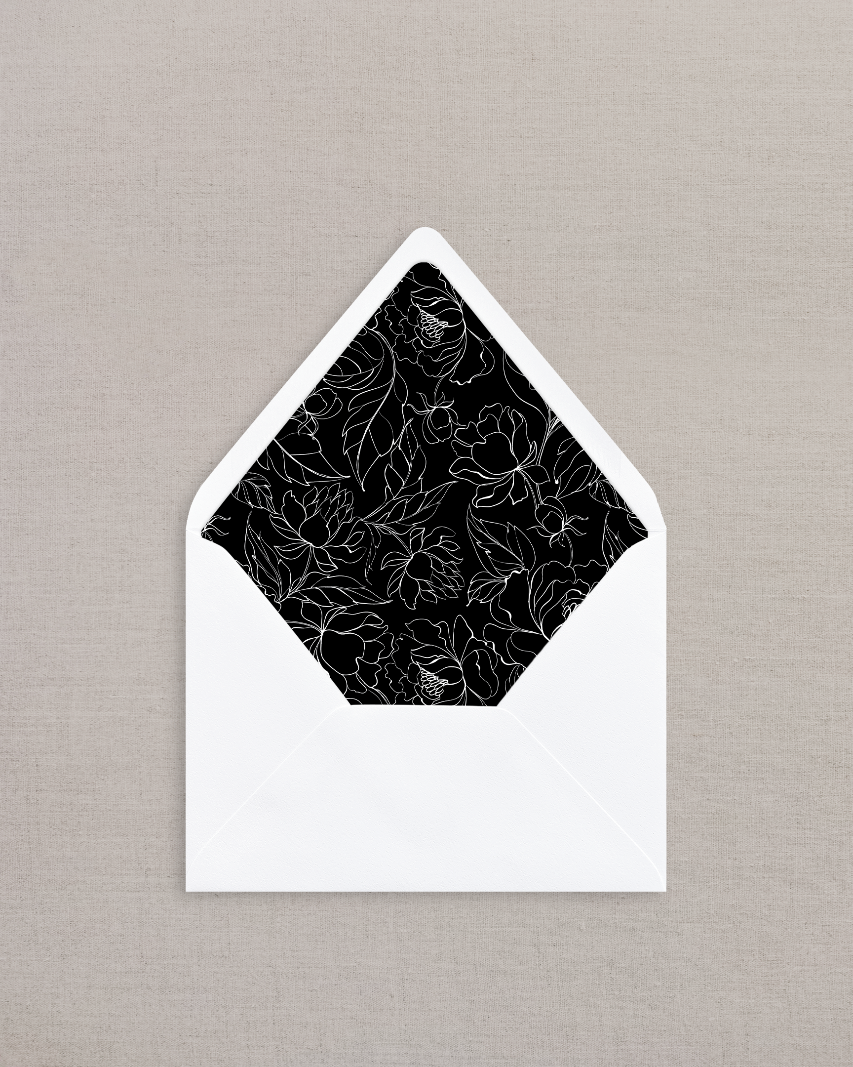 Make your Semi-Custom Invitation Suite even more special and unique! Purchase this Add-on Service to swap out the standard liner shown in your suite with one of the options shown here (swipe to see all images and then select from the dropdown below). All patterned liners are digitally printed on eggshell paper to coordinate with your Semi-Custom suite.