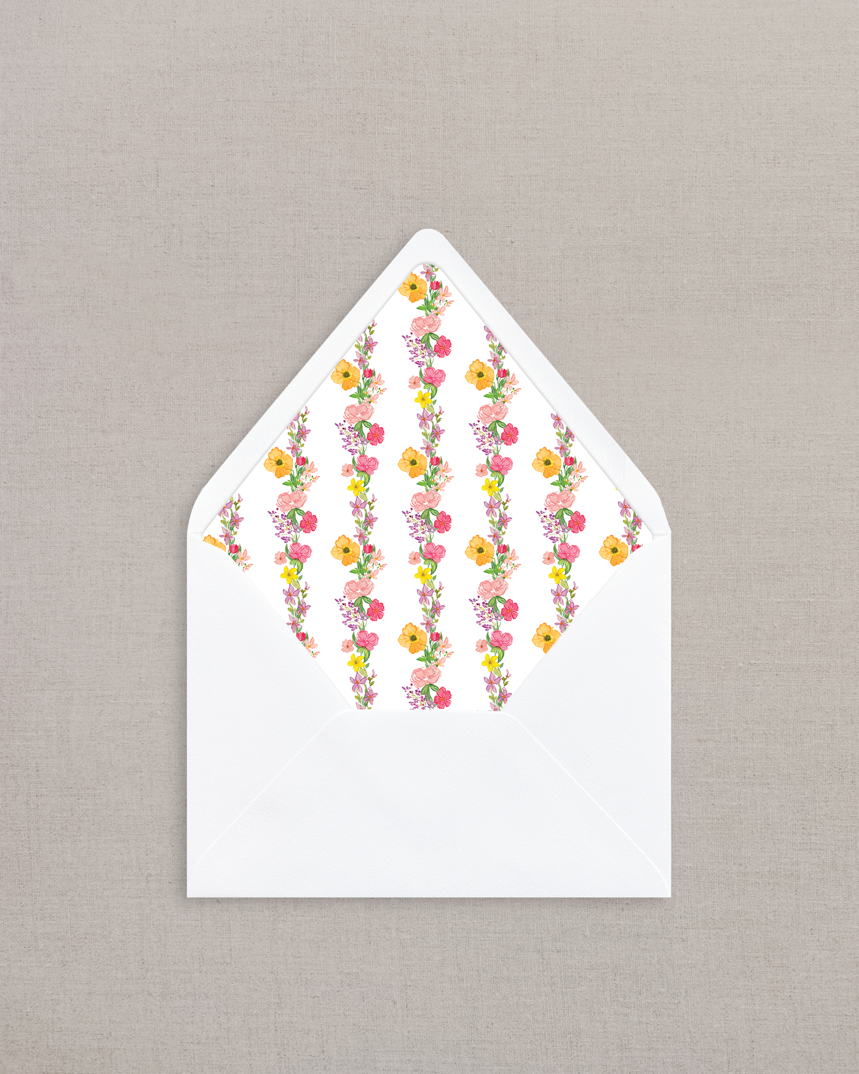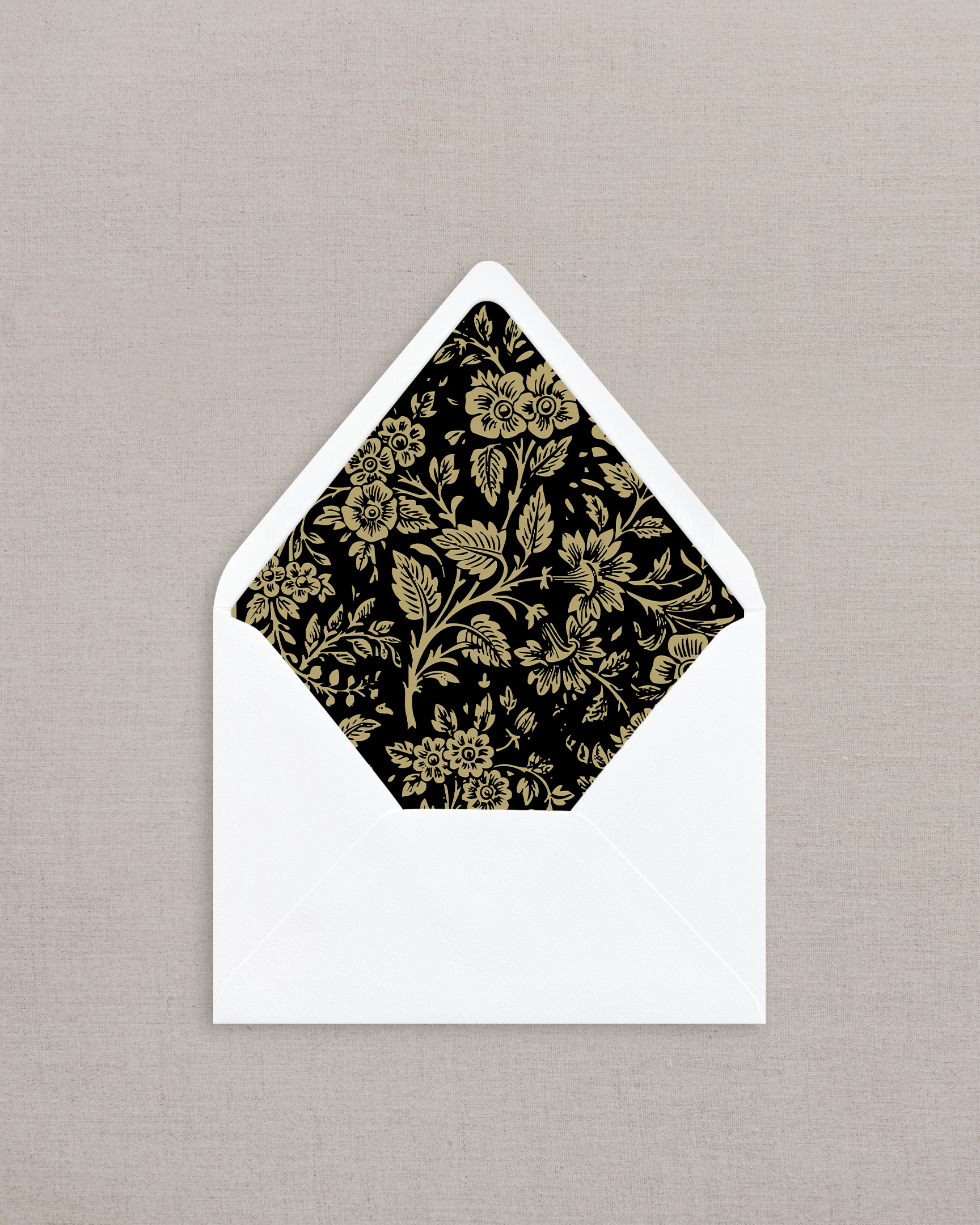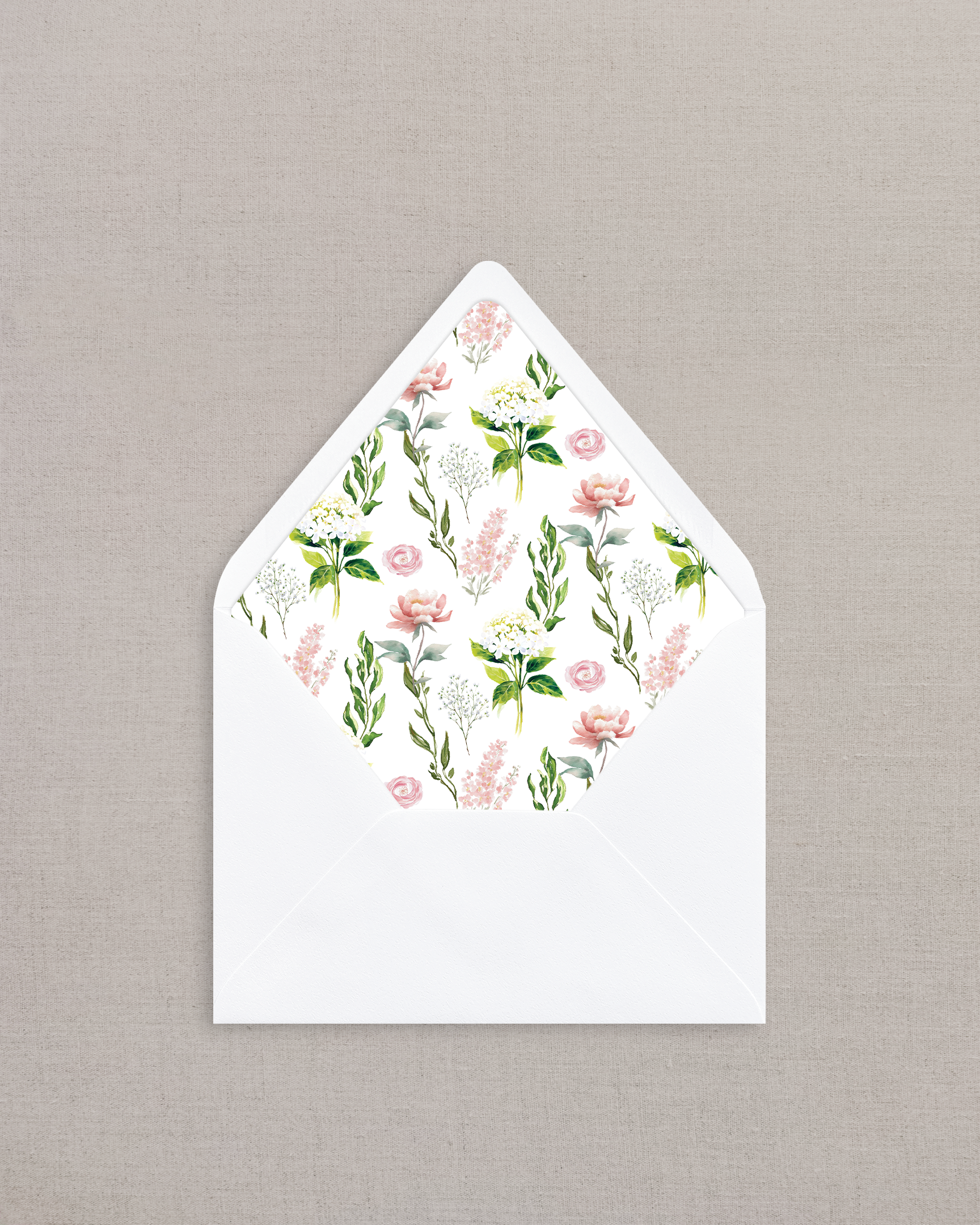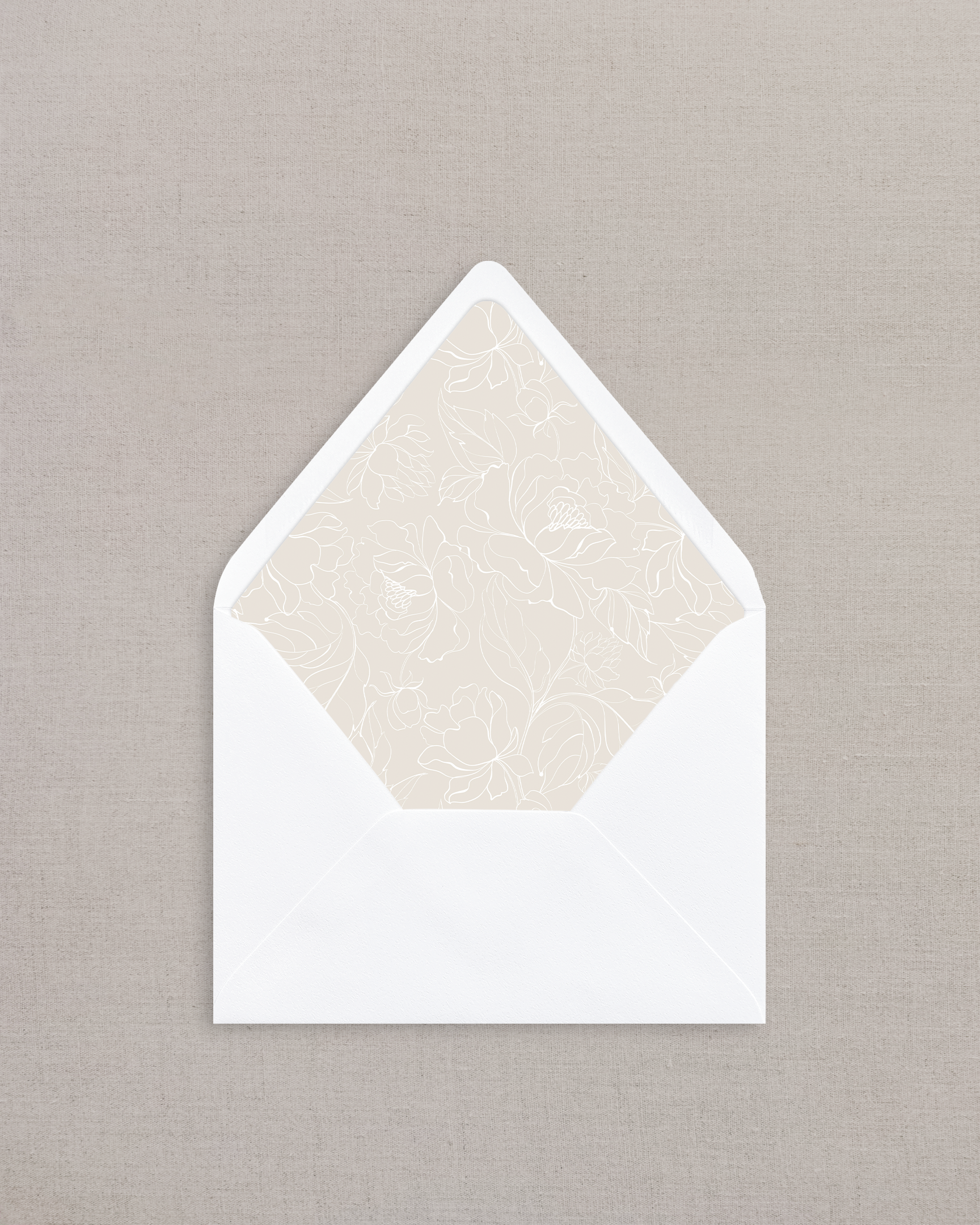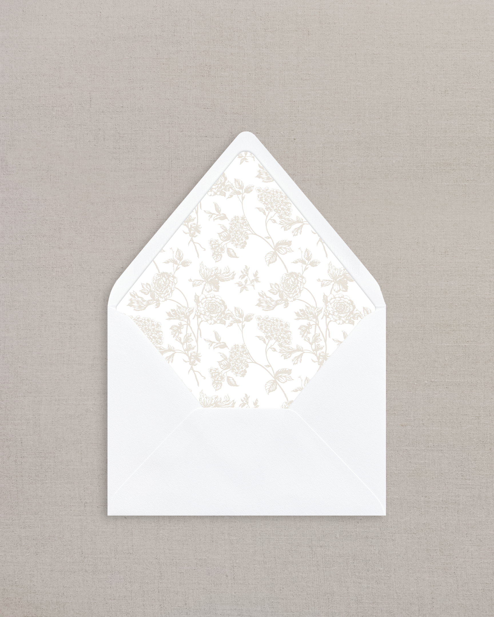 Make your Semi-Custom Invitation Suite even more special and unique! Purchase this Add-on Service to swap out the standard liner shown in your suite with one of the options shown here (swipe to see all images and then select from the dropdown below). All patterned liners are digitally printed on eggshell paper to coordinate with your Semi-Custom suite.