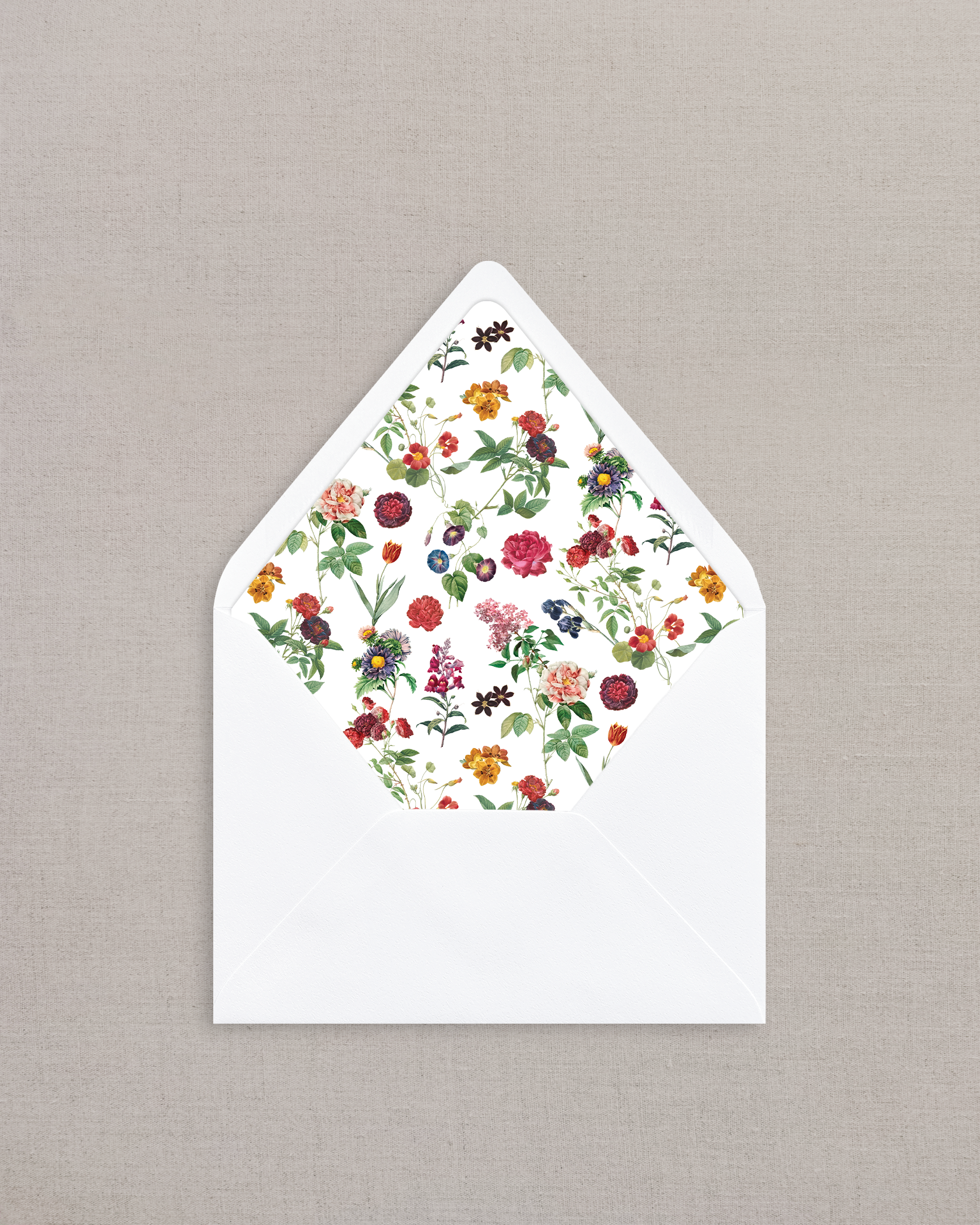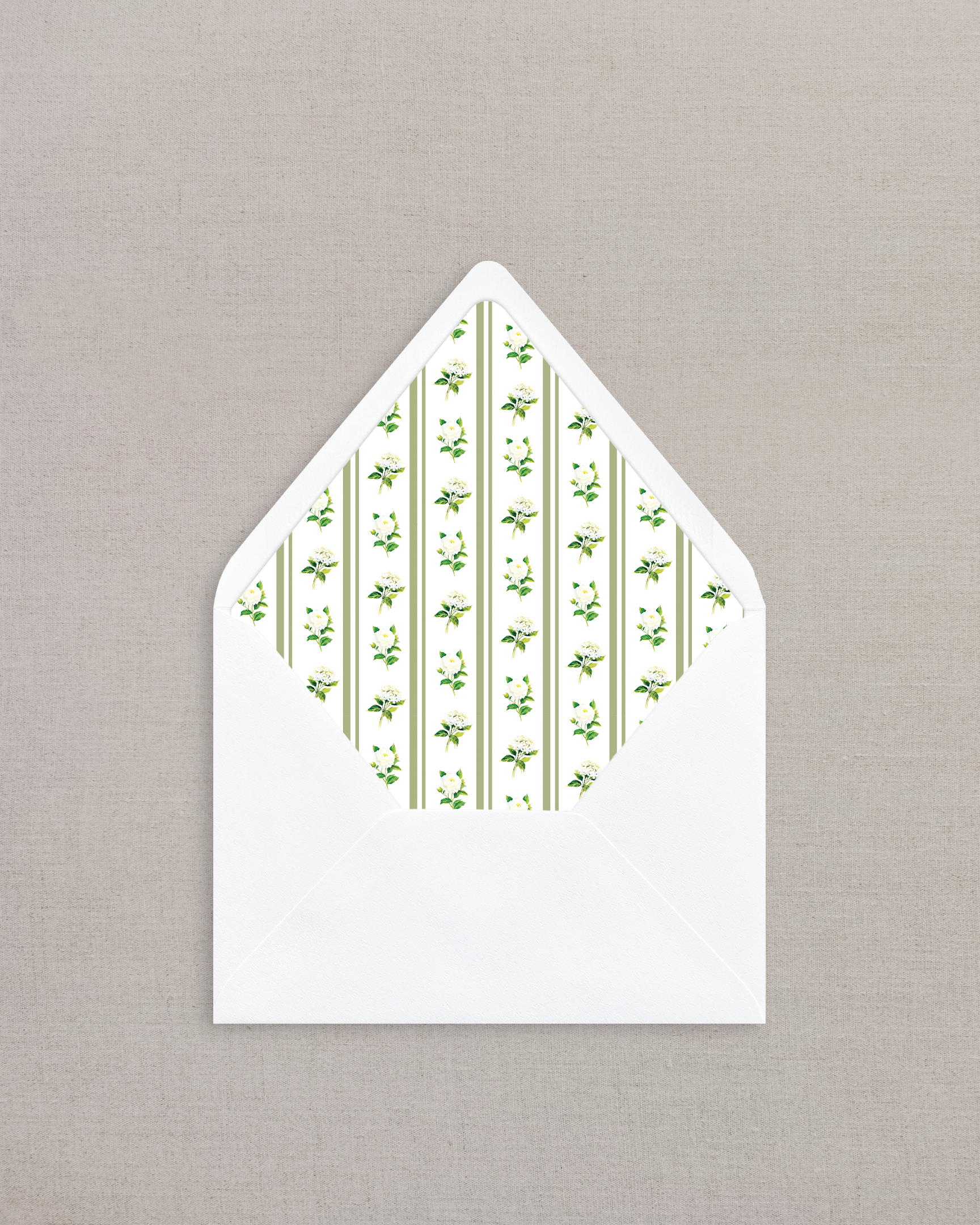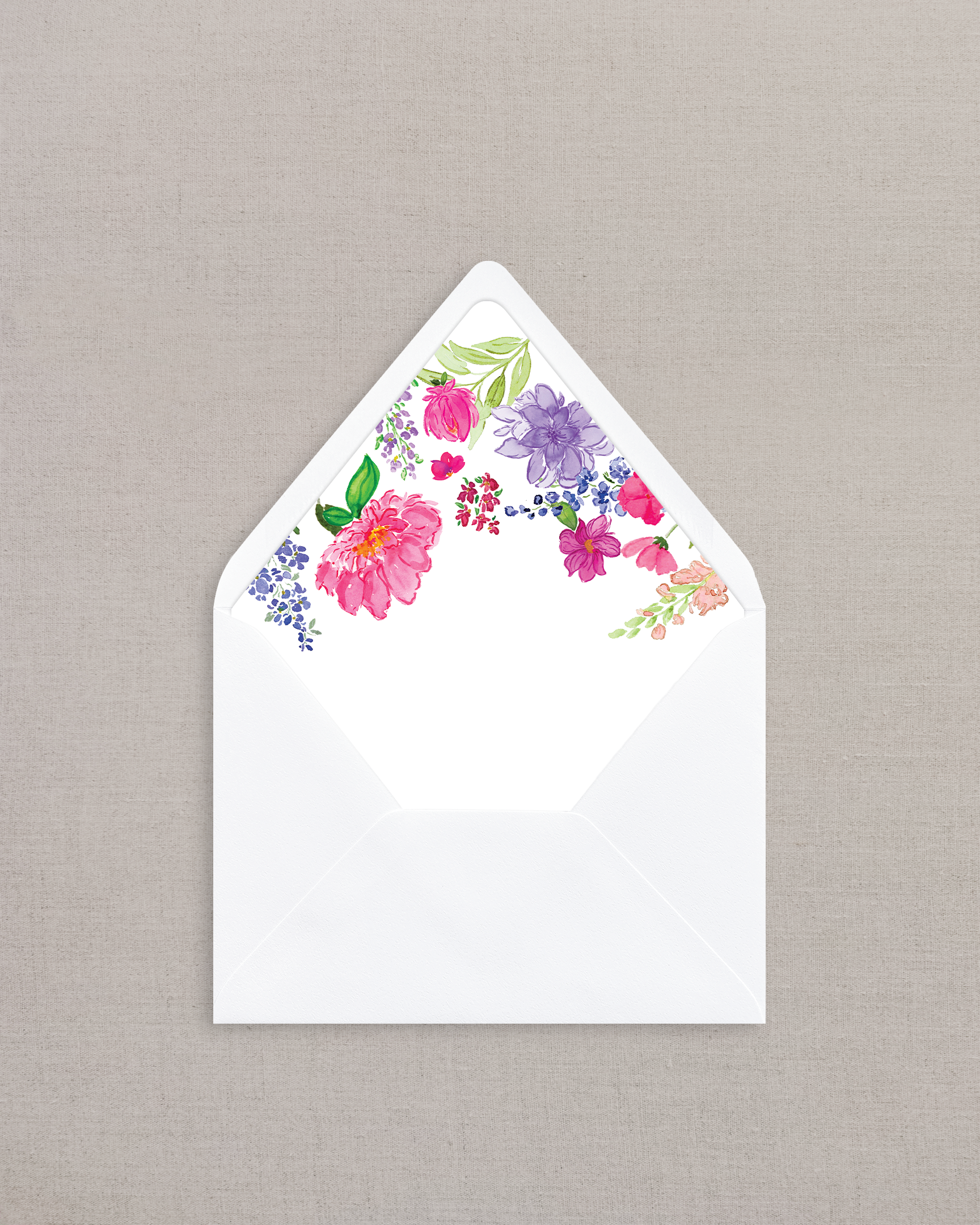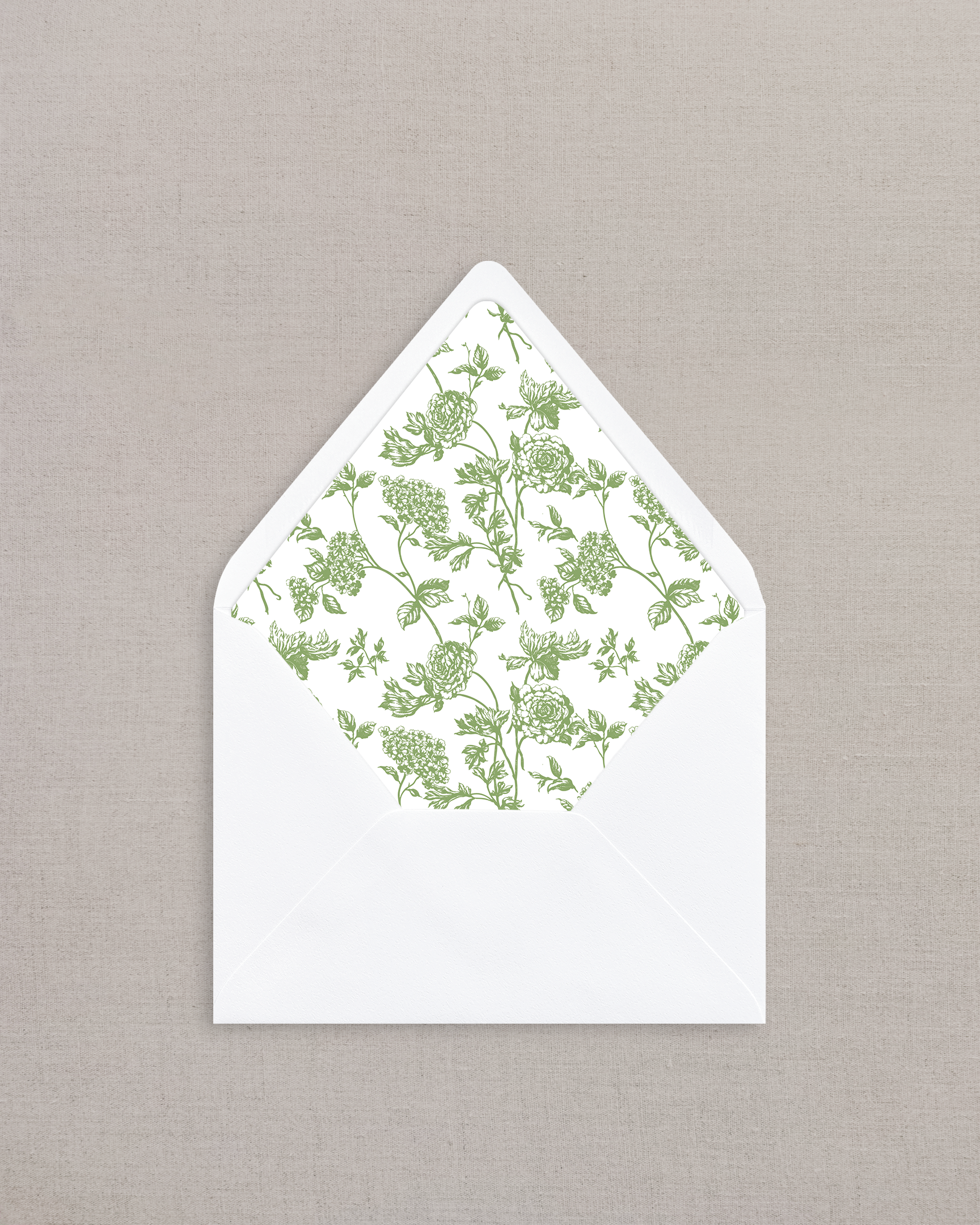 Make your Semi-Custom Invitation Suite even more special and unique! Purchase this Add-on Service to swap out the standard liner shown in your suite with one of the options shown here (swipe to see all images and then select from the dropdown below). All patterned liners are digitally printed on eggshell paper to coordinate with your Semi-Custom suite.