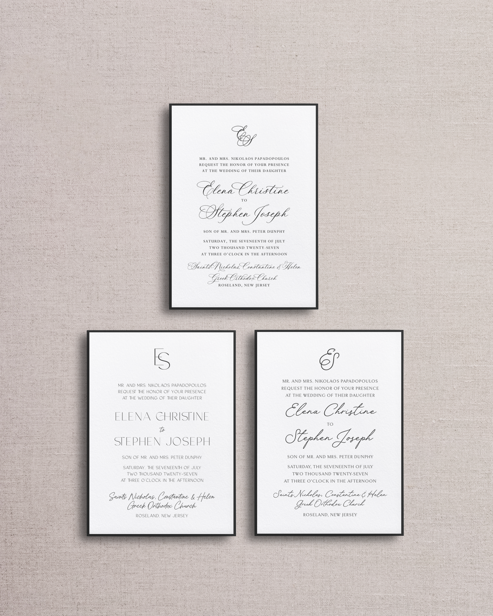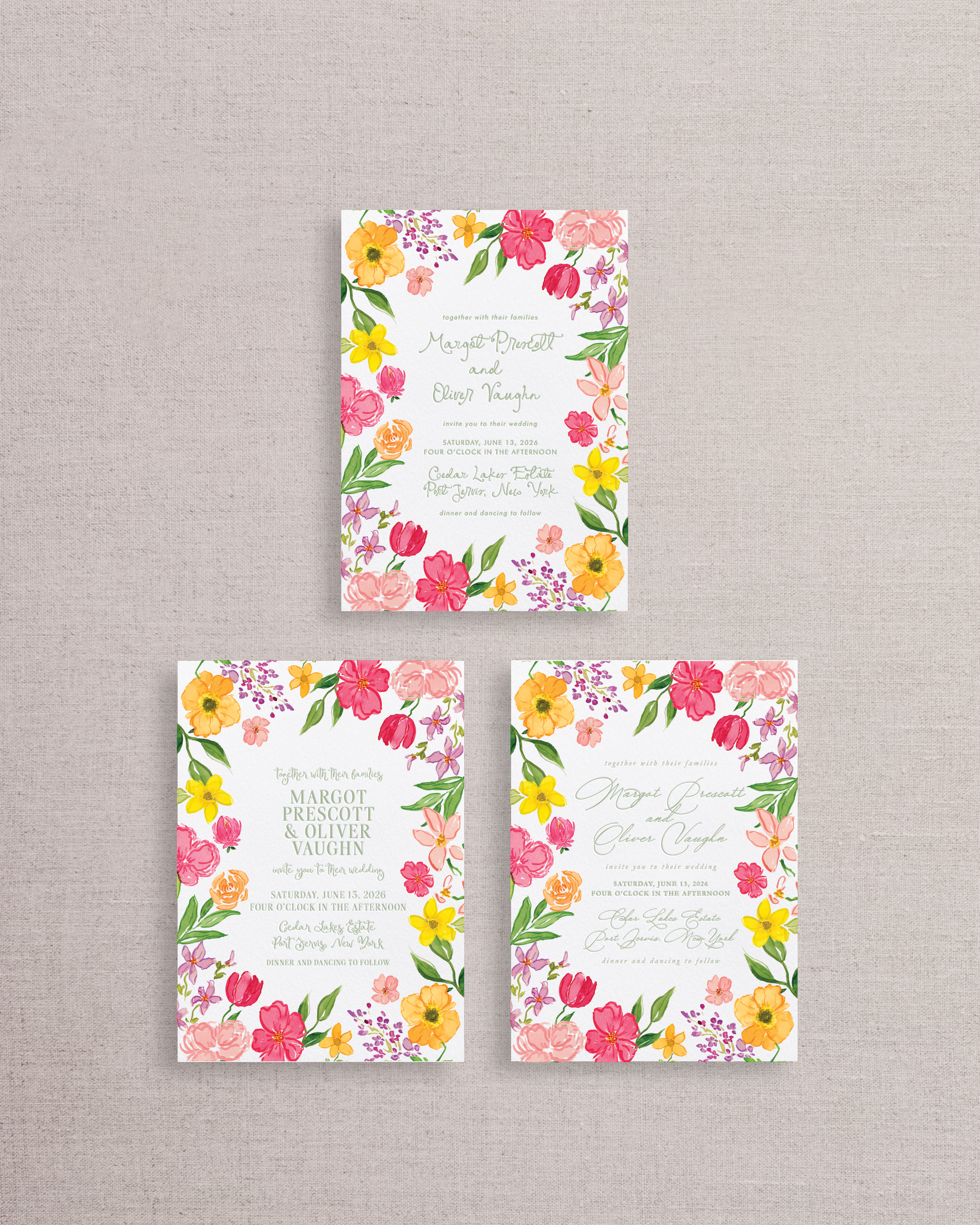 The ultimate tool to make your Semi-Custom Invitation Suite one of a kind! Purchase this Add-on Service to swap out the standard font selection shown in your suite with one of the options shown here (swipe to see all images and then select from the dropdown below). Your designer will use your selected fonts when drafting your Digital Proofs!